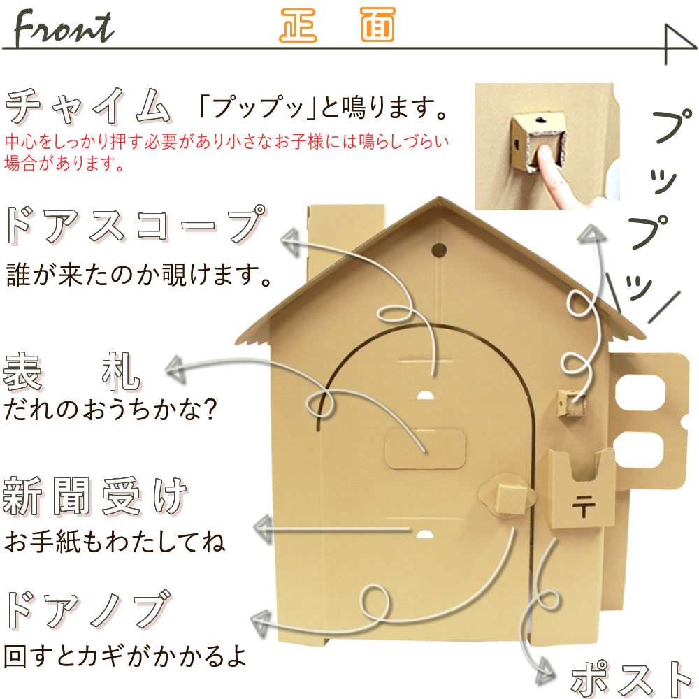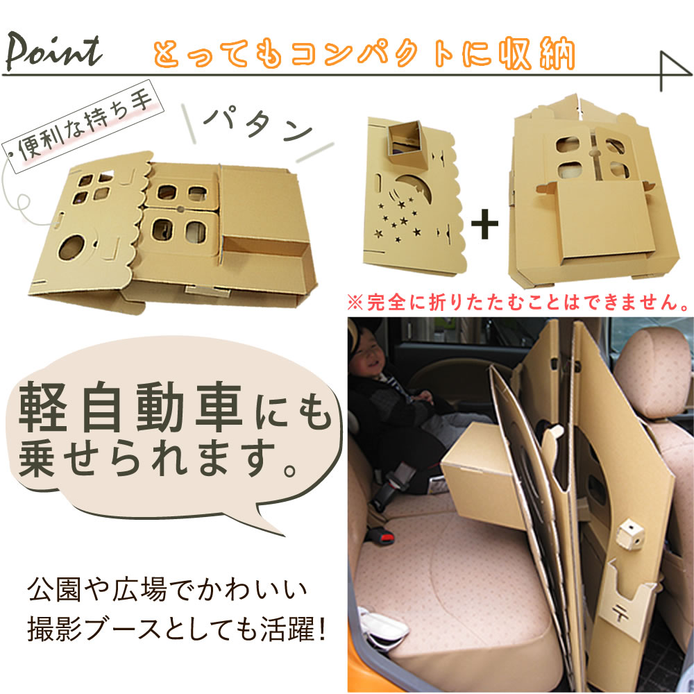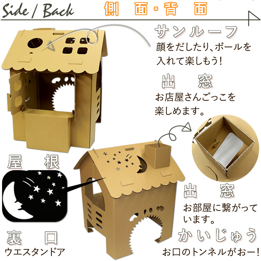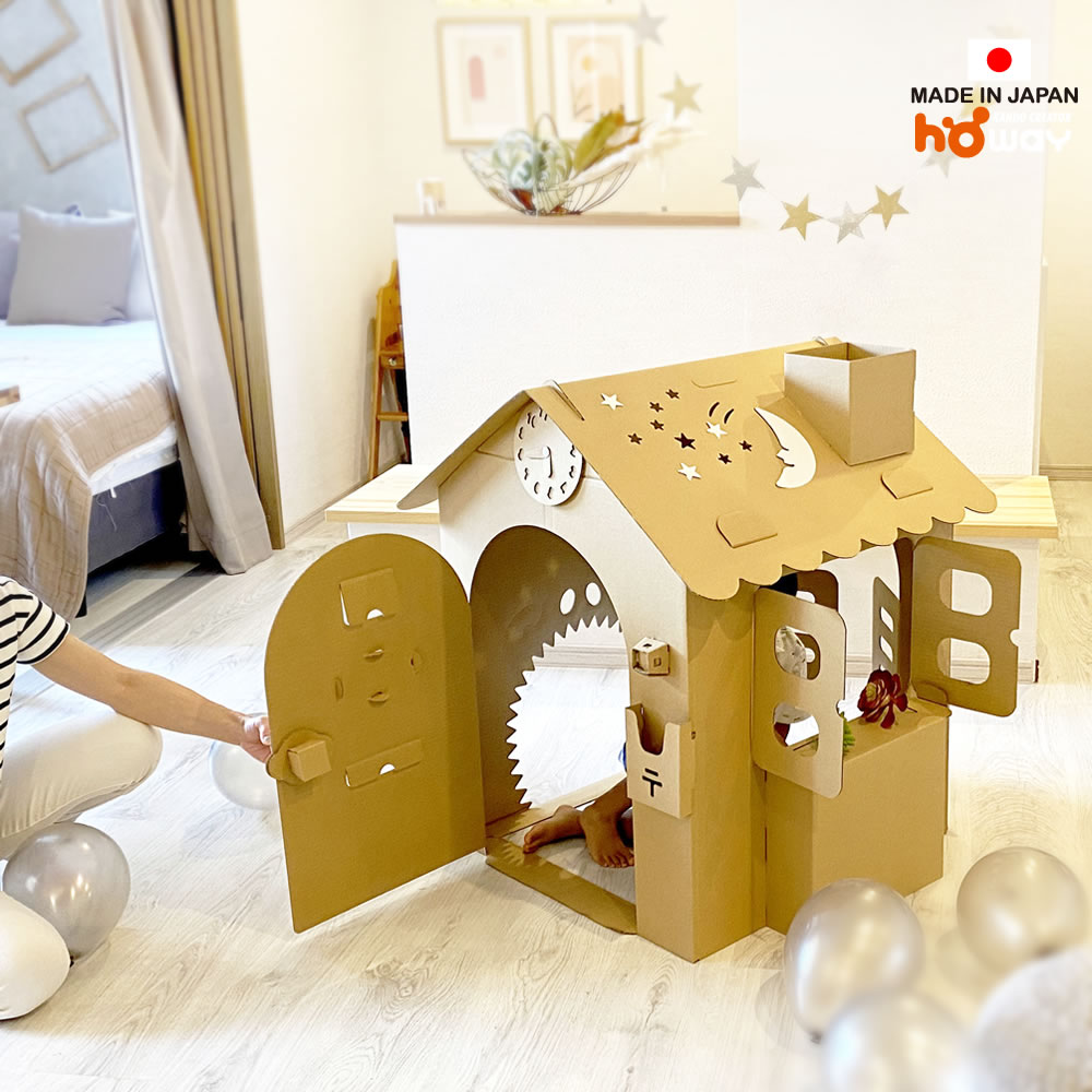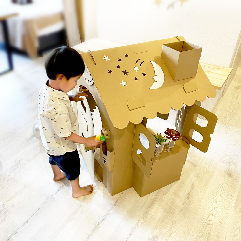 ダンボールハウス 茶 オンリーハウスは、組み立ても簡単で、お子様と一緒に楽しむことができます。お絵描きをしたり、お人形遊びをしたり、想像力を存分に広げることができるアイテムです。コンパクトなサイズ感で、お部屋をすっきりとしつつも遊び道具として活躍します。