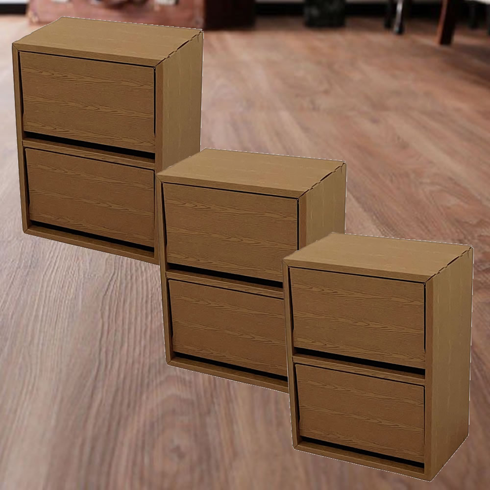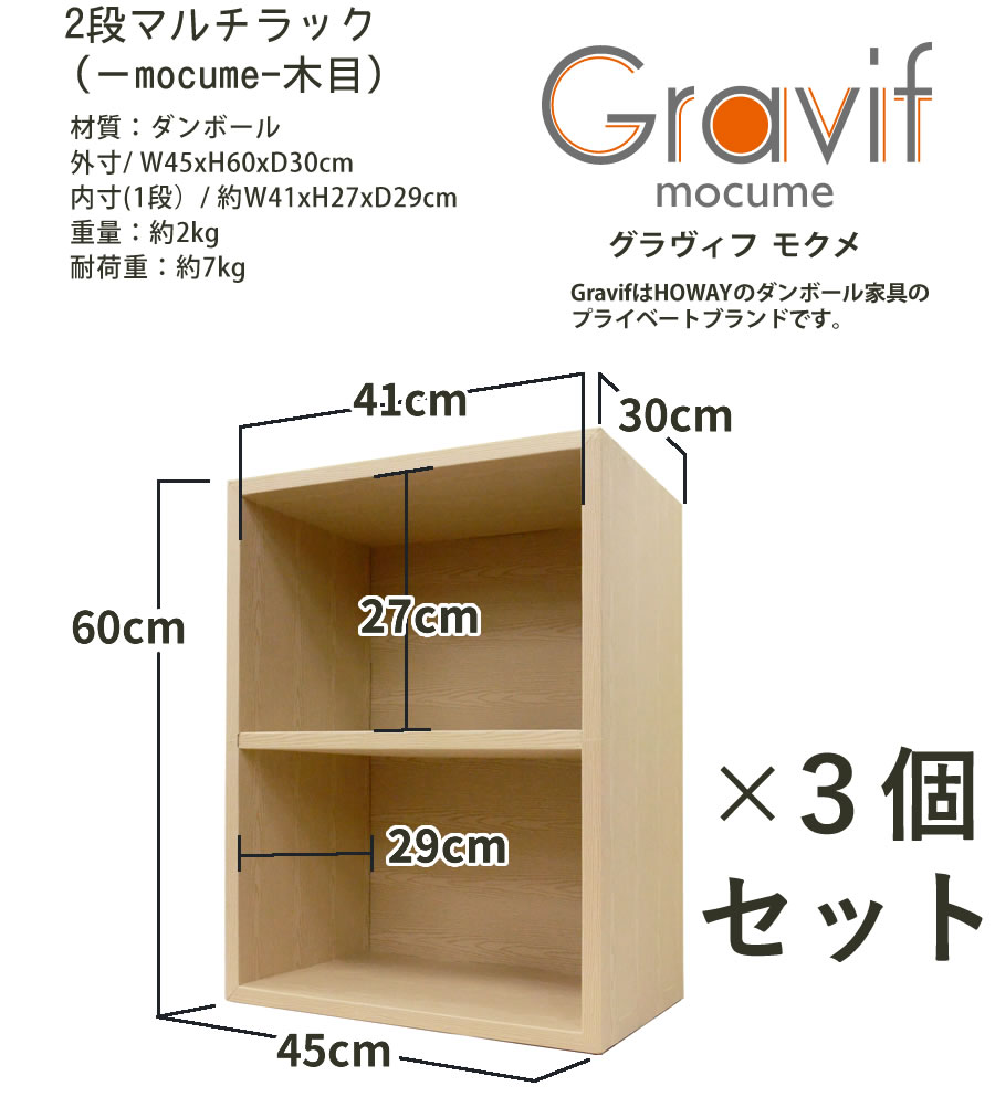 ダンボール 2段 マルチラック専用扉付3ヶ入り ウッドシリーズ ノベルティ
