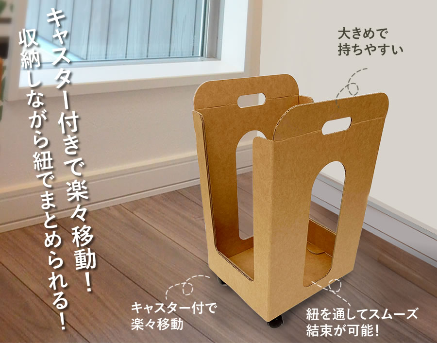 ストッカーに置いたダンボールをそのまま紐でくくることができます。