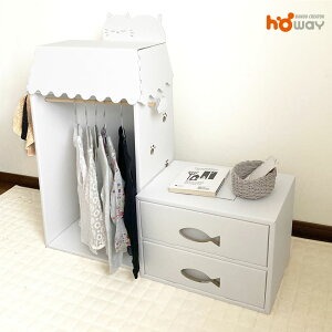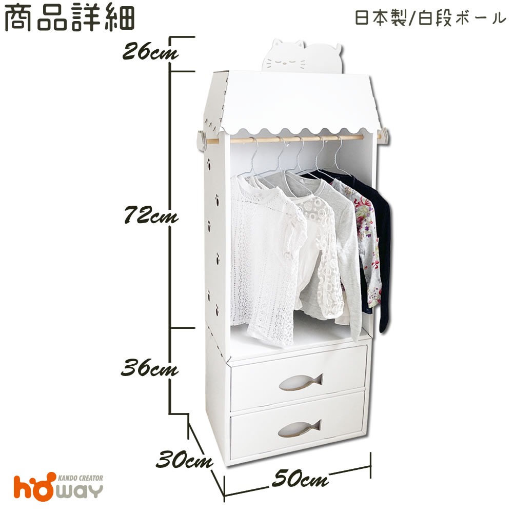【破棄が楽々】ダンボール キッズハンガーラック&チェストセット(ネコ) sale ノベルティ